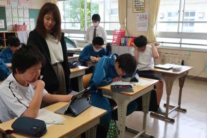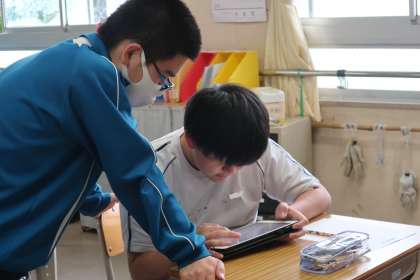 これまでに校内のいろいろなものの長さを調べてきたことの発展系として、今回は面積を求める学習に取り組んでいました。