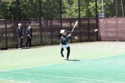 4月29日(日)に柳川瀬公園テニス場で開催された「市民選手権」の決勝トーナメントに出場したソフトテニス部の様子です。