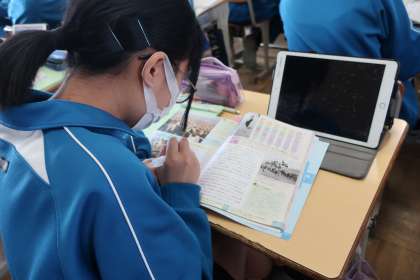 3年3組の社会・歴史分野の授業の様子です。