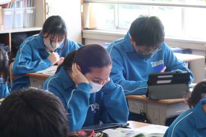 「ファシズムの問題点を考えよう」をテーマに、各自が考えをもって学習に臨んでいました。