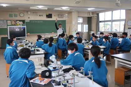 双眼実体顕微鏡の使い方を確認し、今後の観察活動の基礎を学んでいました。
