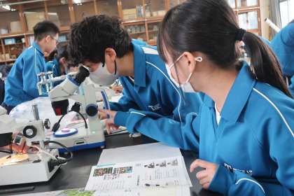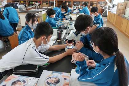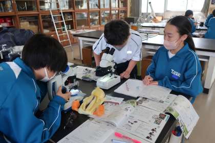双眼実体顕微鏡の使い方を確認し、今後の観察活動の基礎を学んでいました。
