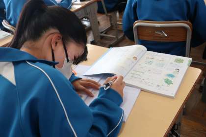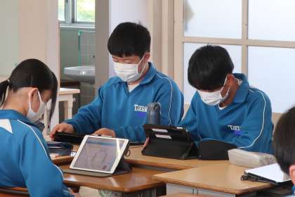 塩化銅の電気分解の様子について、どのようなことが起こっているか自分の考えをもち、仲間と確認し合っていました。