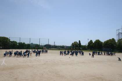 GW明けの昨日、中学校生活初の体育祭に向け、1年生が学年での練習に取り組んでいました。
