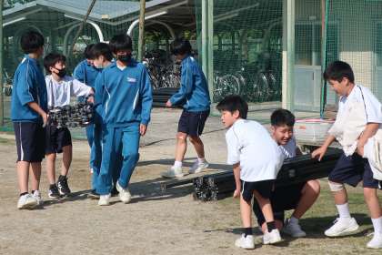 そして、彼らと同じくらい、体育祭には欠かせないものがあります。それが、競技の際の器具の準備や審判を行う生徒たちの存在です。本校では彼らを『体育祭実行委員』と呼びますが、実は全員がボランティア。仲間の競技をサポートし、体育祭を盛り上げようと、自ら志願した生徒たちです。誇りをもって活動に取り組んでいる姿に感心しました。
