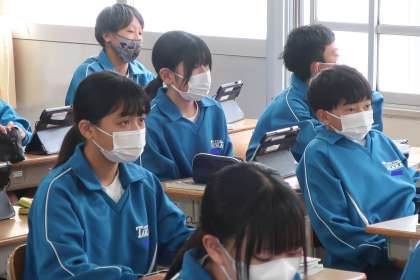 1年4組の社会・歴史分野の授業の様子です。