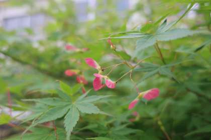 秋になると注目を集めるカエデの葉。色づいていないこの時期は、あまり気にすることはありません。