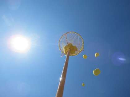 1年生の学年種目「台風の目(玉入れ)」の様子です。