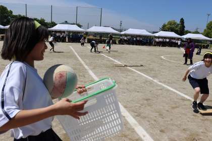 3年生の学年種目「シーソーキャッチ」の様子です。