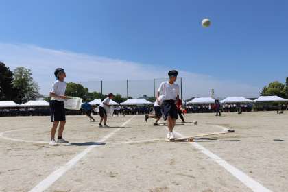 3年生の学年種目「シーソーキャッチ」の様子です。