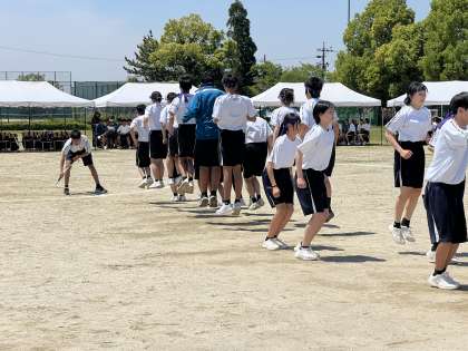 5/17 体育祭 106 〜みんなでジャンプ(2年)〜 公開日 2025/05/17 更新日 2025/05/17 学校行事 最高の天気となった、令和7年度の体育祭。 2年生のみんなでジャンプ(長縄とび)の様子です。