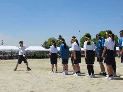 1年生のみんなでジャンプ(長縄とび)の様子です。
