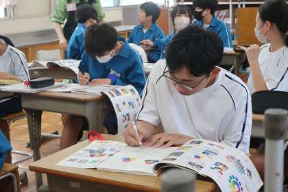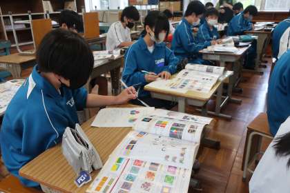 色の学習で、「色の三原色やトーンについて理解しよう」をテーマに学習に取り組んでいました。