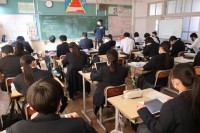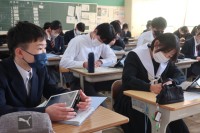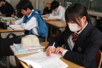 教科書の会話文を読み込み、重要語句を探し出していました。