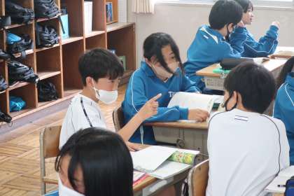 植物の分類についてこれまで学習してきたことを踏まえ、被子植物・裸子植物などの特徴を学んでいました。
