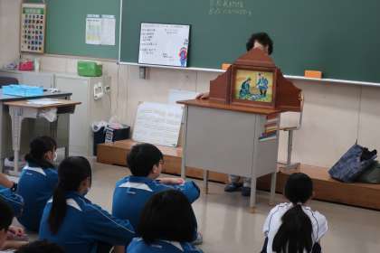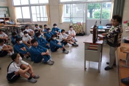 朝の活動時、ハピクロ(=ハッピークローバー・読み聞かせボランティア)のみなさんに、各クラスで読み聞かせをしていただきました。