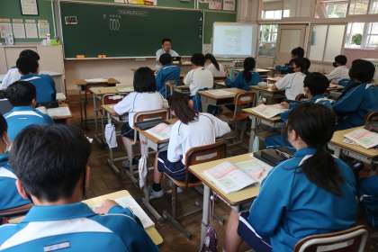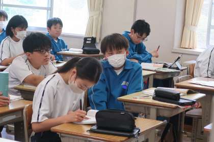 1年3組の社会・地理分野の授業の様子です。