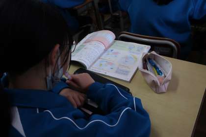 地理の学習の基本を学ぶため、地球儀と世界地図の特徴を探し出していました。