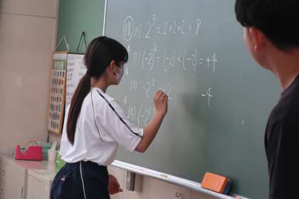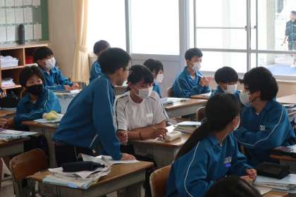 符号のついた式の計算の学習で、自分が理解することはもちろん、仲間が理解するまで熱心に教え合っている姿が印象的でした。