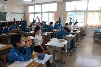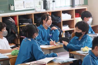 符号のついた式の計算の学習で、自分が理解することはもちろん、仲間が理解するまで熱心に教え合っている姿が印象的でした。