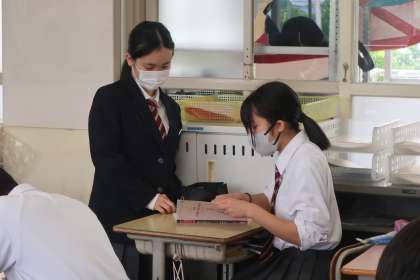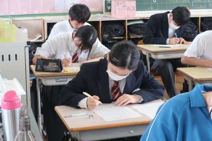 5/23 3-2 学習内容を総点検 4 公開日 2025/05/23 更新日 2025/05/23 各学年から 3年2組の英語の授業の様子です。 定期テストを前に、たくさんの学習プリントで学習してきた内容を確認していました。