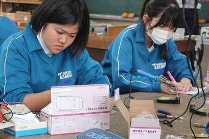 ダイナモラジオの製作で、電子回路に部品を取り付ける活動を通して、エネルギー変換のしくみも学んでいました。