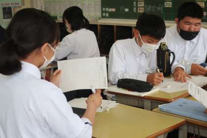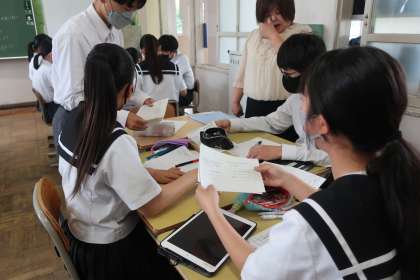 式の展開の問題の取り組んだあと、定期テストの出題範囲になっている部分のプリントに取り組んでいました。