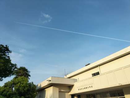 朝、きれいな飛行機雲を見かけました。定期テスト初日を迎える生徒たちを応援しているようです。