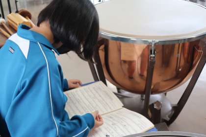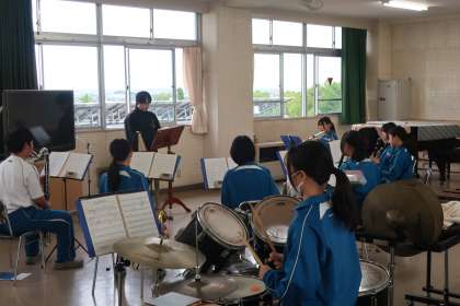 夏の演奏会に向け、一生懸命練習していました。地域指導者の指導にうなずいたりメモを取ったりしている様子が印象的でした。