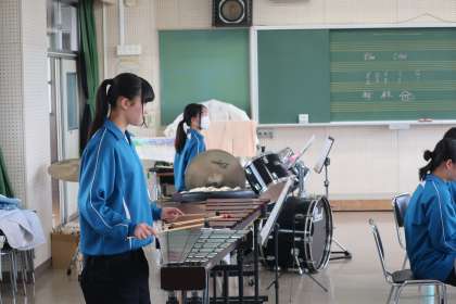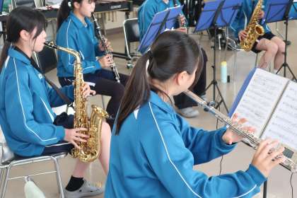 夏の演奏会に向け、一生懸命練習していました。地域指導者の指導にうなずいたりメモを取ったりしている様子が印象的でした。