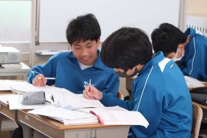 来週に迫った定期テストの出題範囲について、仲間の力を借りながら総復習に取り組んでいました。