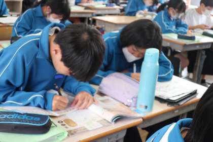 江戸時代の産業の発達について学んだあと、定期テストに向けた学習内容の総復習に取り組んでいました。