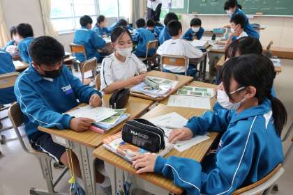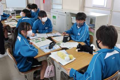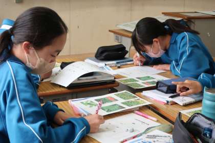 「さまざまな植物を分類してみよう」をテーマに、グループで学習を進めていました。