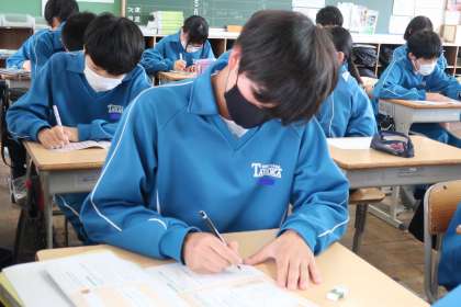 テキストを使って定期テストの出題範囲の学習に取り組んでいました。