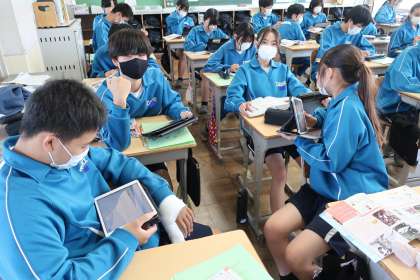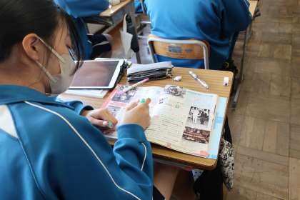 「戦後、日本はどのように変わったか」を探るため、それぞれが考えた「戦争から学んだこと」を発表し合っていました。