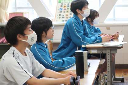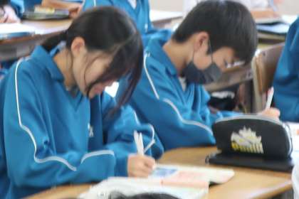 1年2組の社会・地理分野の授業の様子です。