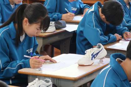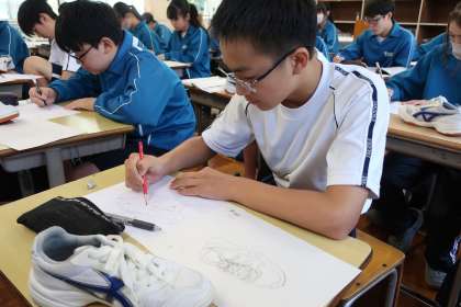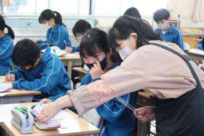 スケッチの学習で、「体育館シューズの特徴をとらえよう」をテーマに、作品づくりに取り組んでいました。