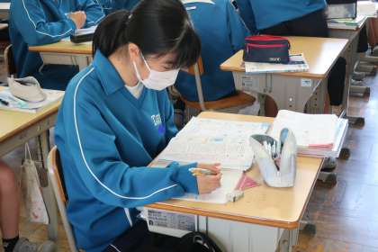 定期テストを目前にして、学習した内容を仲間の力を借りながら総復習していました。