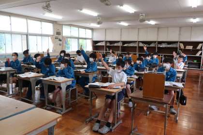 「絵の具の具合と平塗りの仕方・片付け方をマスターしよう」をテーマに、作品づくりの基本を学んでいました。