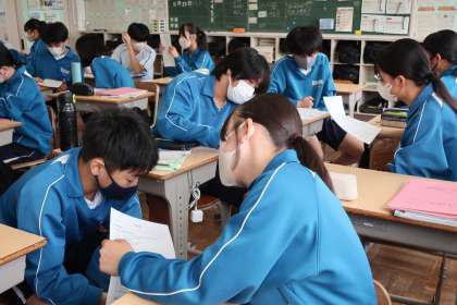「俳句」についての英語の会話でのやり取りを役割を分担して取り組んでいました。