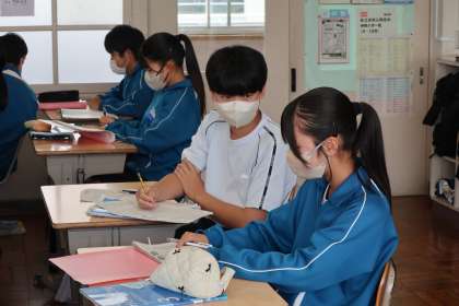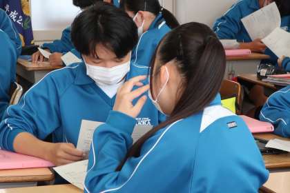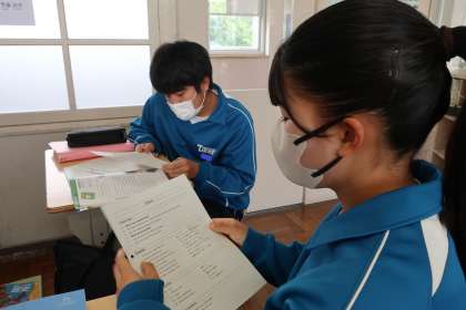 「俳句」についての英語の会話でのやり取りを役割を分担して取り組んでいました。