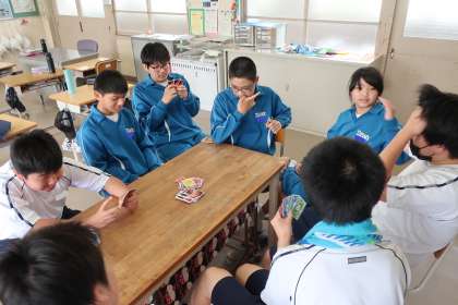 カードゲームを通して、仲間とのコミュニケーション力を高めていました。