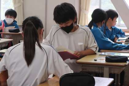 英語の会話文を役割を決めたり、相手を代えたりしながら、何度も意欲的に取り組んでいた姿が印象的でした。