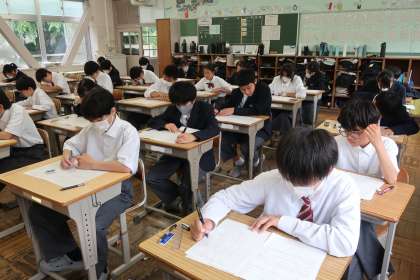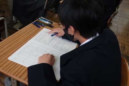 1年1組の第1回定期テスト(2日目)の様子です。