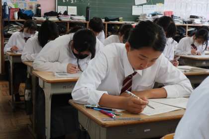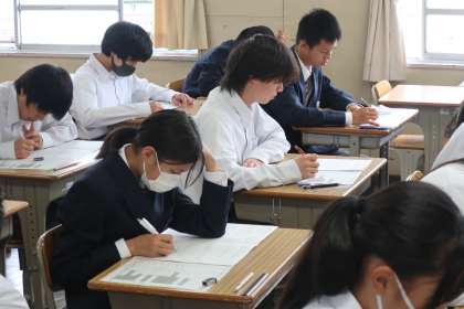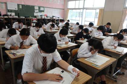 2年2組の第1回定期テスト(2日目)の様子です。
