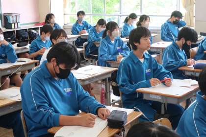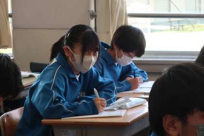 定期テストが返却され、解説を聞いた後、テスト直しに取り組んでいました。