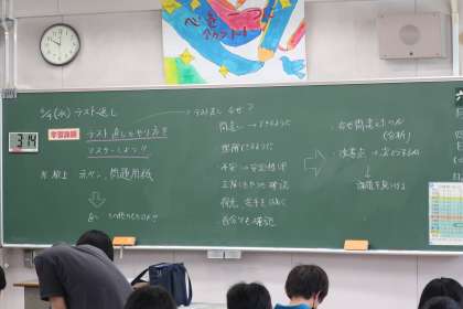 6/4 1年 大切なテスト後 公開日 2025/06/04 更新日 2025/06/04 各学年から テスト返却時の1年生の教室の様子です。 テスト前の勉強の仕方、テスト中の頑張り、テスト返却後にするべきことなど、中学校の学習で大切にすべきことを丁寧に説明しています。