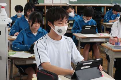 定期テストが返却され、解説を聞いた後、テスト直しに取り組んでいました。