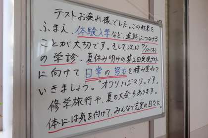 定期テストを終えたばかりですが、1か月後の『学習診断テスト』や夏休みの『体験入学』などについて触れられています。