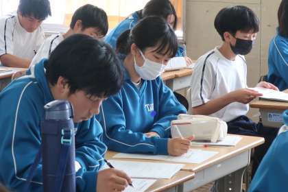 6/4 2-2 テスト返却・解説 2 公開日 2025/06/04 更新日 2025/06/04 各学年から 2年2組の数学の授業の様子です。 定期テストが返却され、解説を聞いた後、テスト直しに取り組んでいました。
